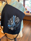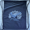 Enchanted Yarn Crawl 2025 Bag. This year the bags are a versatile drawstring backpack featuring the Enchanted Yarn Crawl logo in a brilliant turquoise on black background.