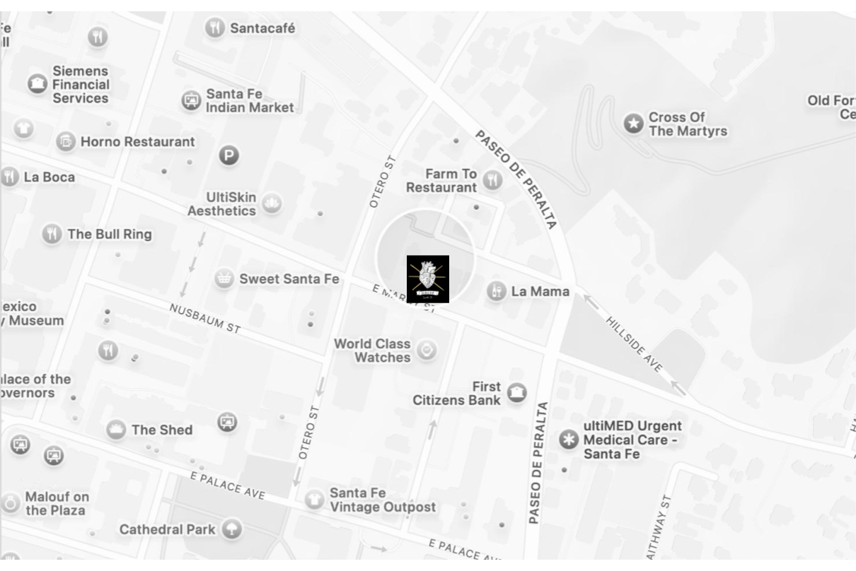 We're located in Santa Fe’s vibrant and historic downtown and in walking distance from the Plaza, and many restaurants, galleries, and shops. 213 East Marcy Street Phone: 505-644-9276 Parking meters are available on E. Marcy St. If you need handicap access, you may use the driveway next to our building. |