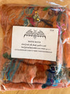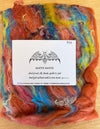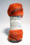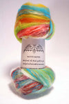 Batty Batts are one of a kind blended batts, ready for spinning or felting. Hand carded, these batts are approximately 3.5 oz of hand dyed Merino, Silk, threads, sparkle and "junk." The color choices shown are inspirations for the hand made batt you will receive. Each batt is made to order, so color variations are to be expected. Merce has named each batt "Color-Inspired" so that you can select a colorway that inspires you!