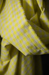 A bright gingham in neon yellow and cream. 148cm wide. Check size: 1.2cm Country of origin; India.